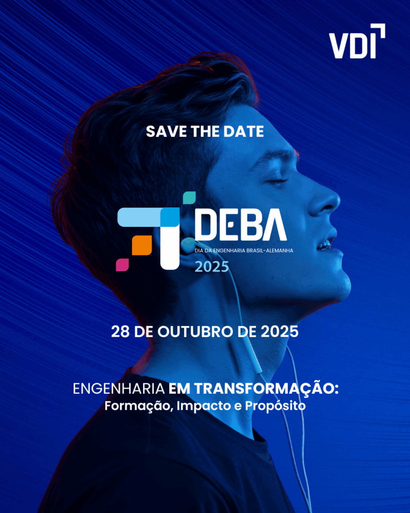 No dia 28 de outubro, acontecerá o maior e mais esperado evento da VDI: o DEBA 2025 (Dia da Engenharia Brasil-Alemanha). Reuna-se com os maiores especialistas, líderes e empresas para discutir as tendências que vão moldar o futuro da engenharia. Além de muito network e um coquetel maravilhoso.